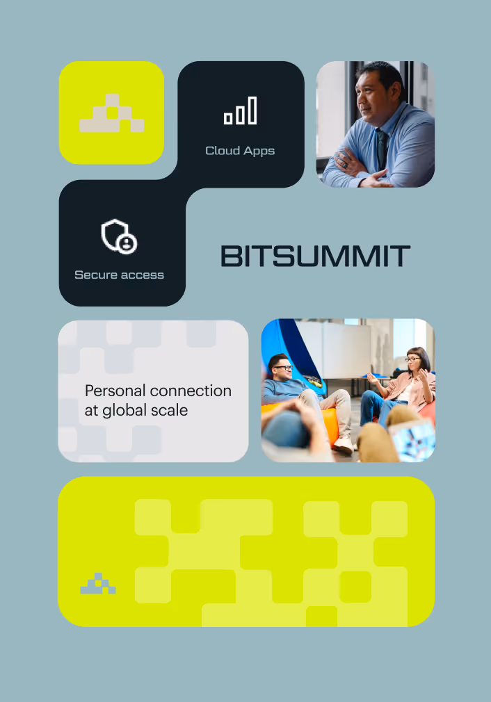 From there, the system expanded across the brand with interactive elements, numerals, and dynamic assets that carried the story of transformation forward. The result was a flexible, modern identity that positioned Bitsummit as a future-focused partner, ready to help companies innovate and thrive.