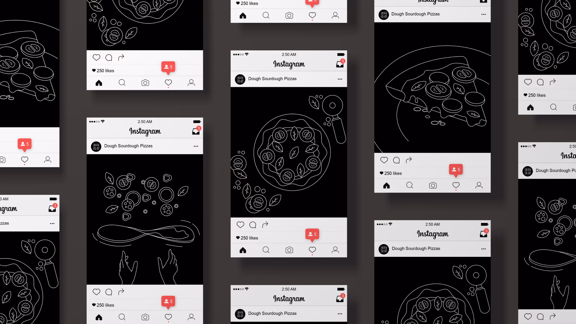 A strong emphasis was placed on Dough’s digital presence as well. The social media strategy extended the brand’s illustration style into playful, outlined pizza visuals used as Instagram teasers. These graphics created intrigue and consistency across the feed, reinforcing brand recall while leaving space for the bold photography of products to shine. The combination of minimal design and lively content allowed Dough to feel premium yet approachable, resonating with its target audience of teens and young adults in Lahore, while appealing more broadly through its chic and timeless visuals.