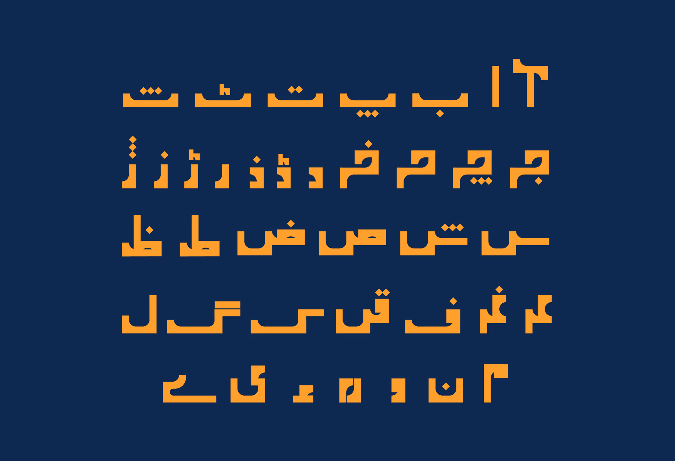 The typeface features a full set of Urdu letters that are designed to combine seamlessly, resulting in visually balanced and modern letterforms. Unlike conventional Urdu fonts that rely on half-letters and complex ligatures, Zawiye works almost like building blocks—much like Legos—allowing words and sentences to be formed quickly and consistently.